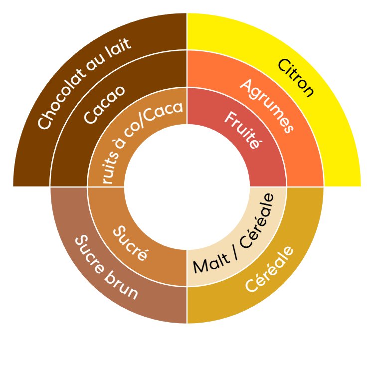 Profil aromatique : Sucre brun, Céréale, Chocolat au lait, Citron.